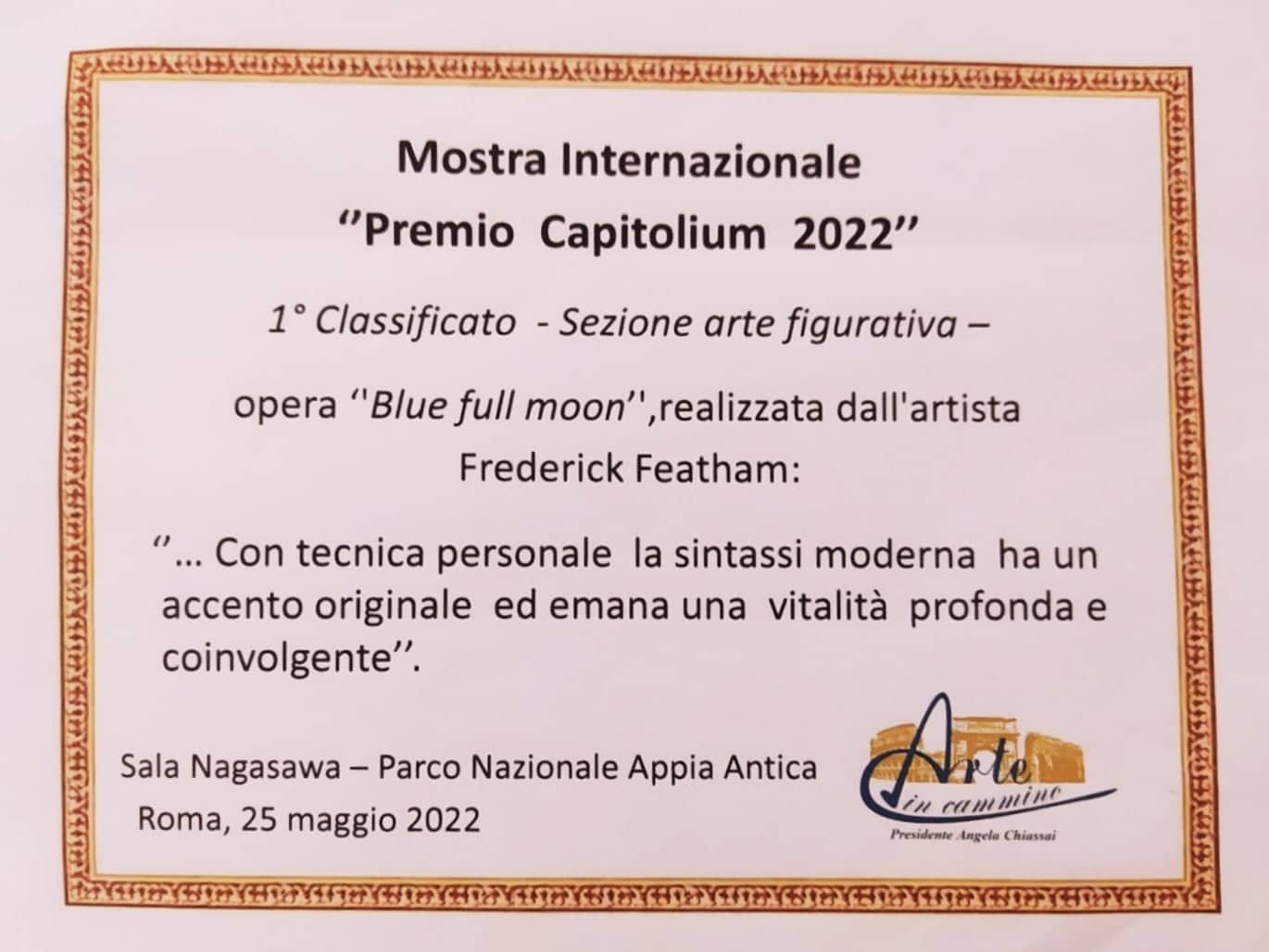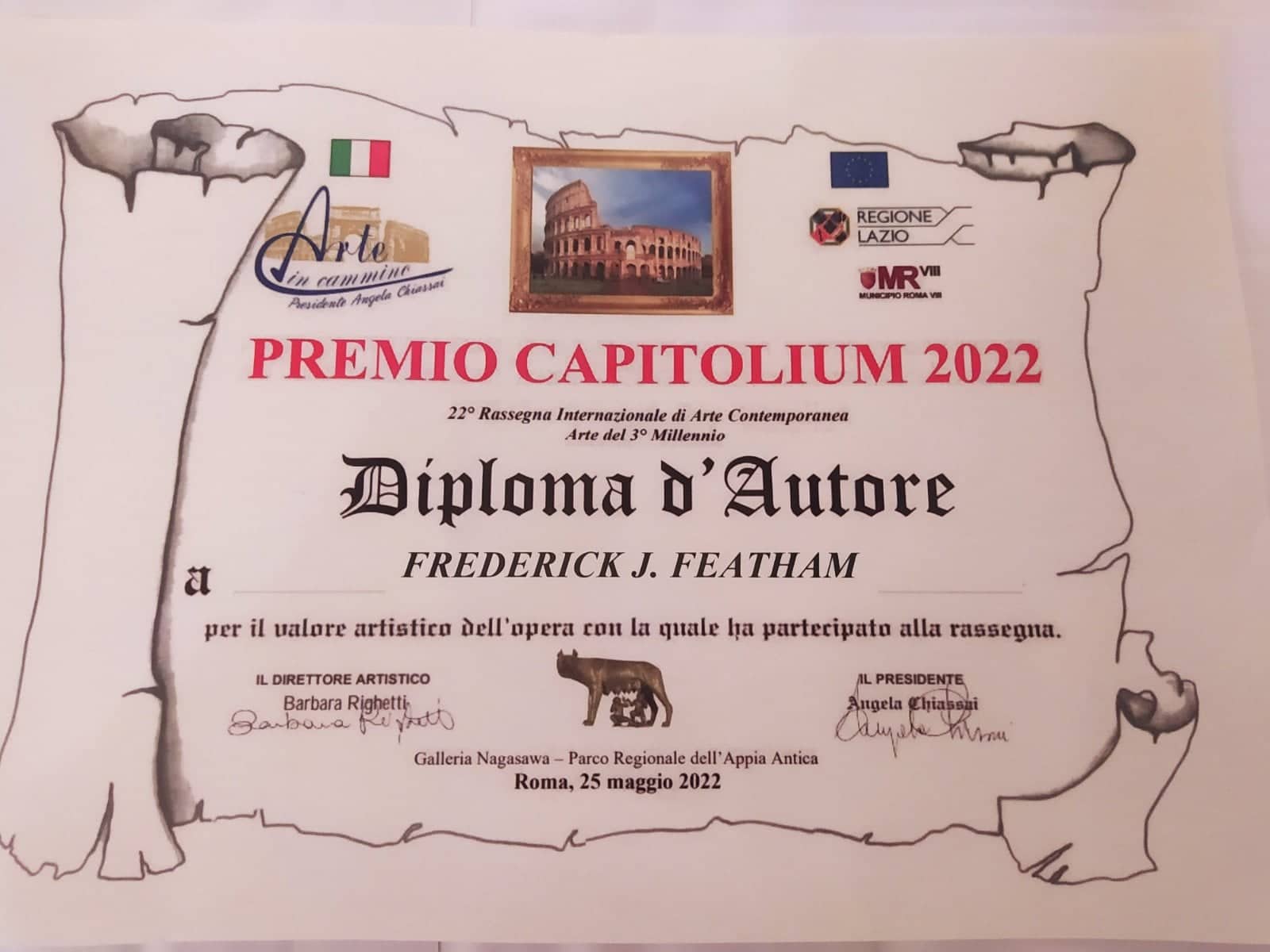 ARTIST F. J. FEATHAM WINS 1st PRIZE IN ROME ART EXHIBITION